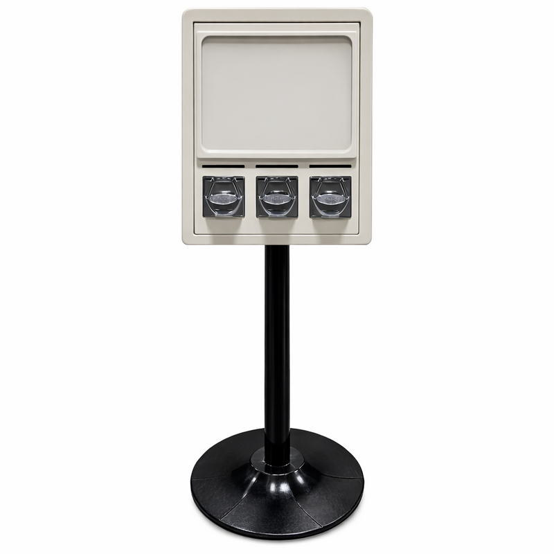 Triple Shop Gumball and Candy Bulk Vending MachineOur 3 compartment bulk vending machine is one of the best values in candy and gumball vending. Top-quality metal coin mechanisms, durable all-metal...