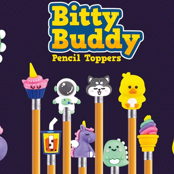 Bring a touch of joy and surprise to your vending machine offering with our Bitty Buddy Vending Capsules, now available in Series 3! This exciting assortment includes a mix of vibrantly colored pencil toppers, each with a distinct playful design that will keep the kids coming back for more.