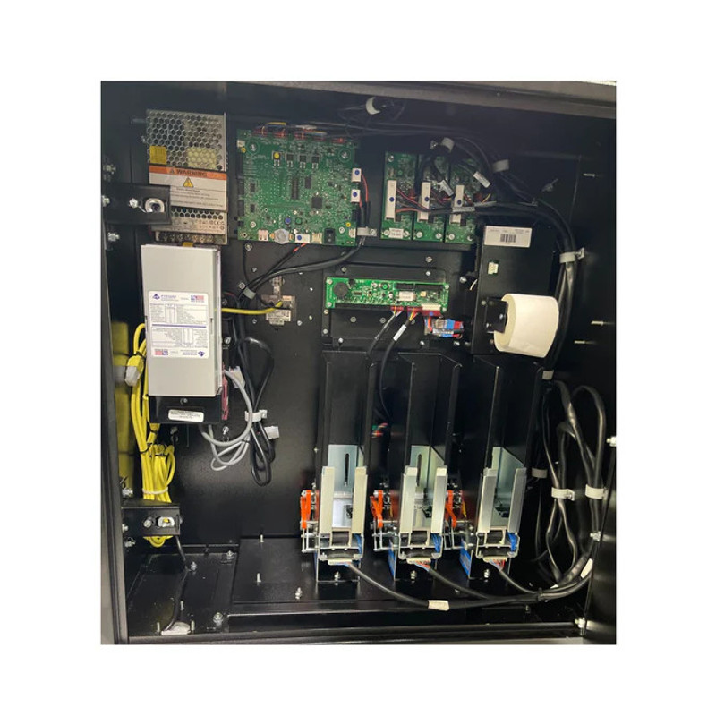 Simply put, a change machine within the US market will generally accept bills and dispense quarters, dollar coins, or tokens. Bill breakers are made to break larger denomination bills into smaller bills. For example, you'd use a change machine to break a 5 dollar bill into quarters and a bill breaker to break a 20 dollar bill into 5 ones and 3 fives. There is a third option that is a bit of a hybrid approach and it allows you to get the best of both worlds by installing a bill recycler on a change machine. All of our Triad 400 series machines come with MEI bill recyclers and can be configured to do this out of the box. Adding a recycler greatly reduces the number of quarters you'll need to hold and give out and will allow you to give a combination of quarters and bills back when someone interests a higher denomination like a 20 dollar bill. MEI recyclers work by recycling or saving a certain denomination as it's inserted into the machine with 5's being the most common. Example configuration: Triad 400 Series that recycles 5's and gives a maximum of 5 dollars in quarters. With this setup, your customer would receive the following back in change for each bill inserted: 1 dollar bill (dispenses 4 quarters), 5 dollar bill (dispenses 20 quarters) and saves/recycles the 5, 10 dollar bill (dispenses 20 quarters and one 5 dollar bill), 20 dollar bill (dispenses 20 quarters and three 5 dollar bills). Each time a 5 inserted into the machine is recycled and saved in a separate stacker. Each recycler stacker holds up to 30 bills and can last quite a long time since they are replenished as they come in.