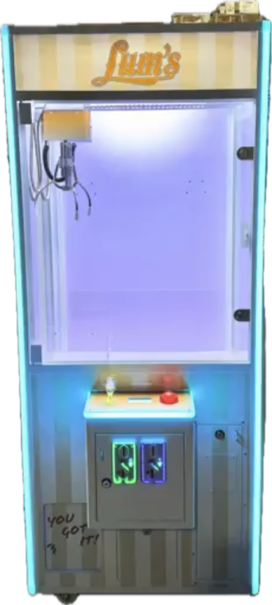Our Custom Logo Crane Machine is the perfect way to advertise while entertaining. This machine can be set up for customers to win by "Skill" or "Play til Win." There is also an option to add a Bill Acceptor for an additional cost. Kids and adults alike will continue to come back over and over again to win their prize. Ideal locations for claw machines are Bowling Alleys, Family Restaurants, Movie Theaters, and many more!
