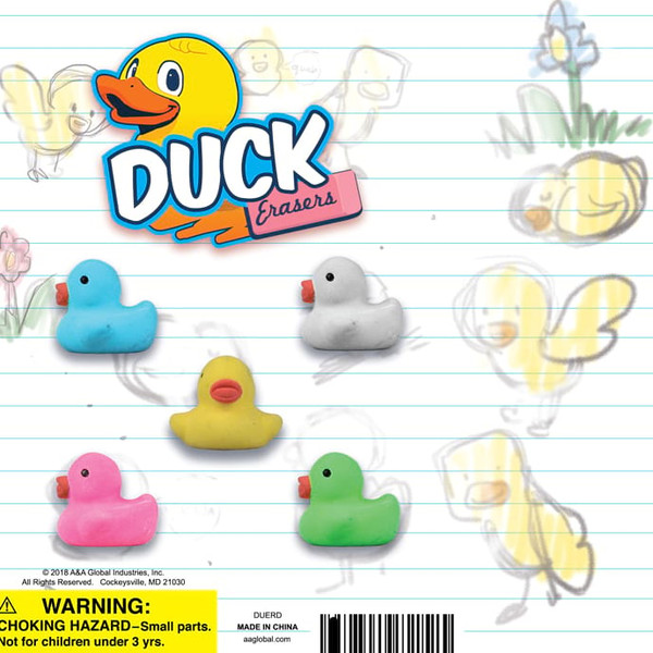 - Duck-Shaped Erasers: Each 1.1" capsule contains a rubber duck-shaped eraser in one of five vibrant colors - blue, yellow, white, green, or pink.