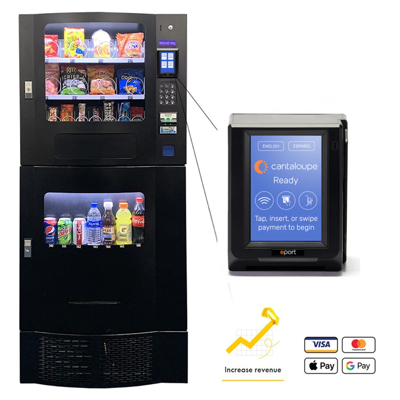 - Vends cold soda, chips, snacks and candy