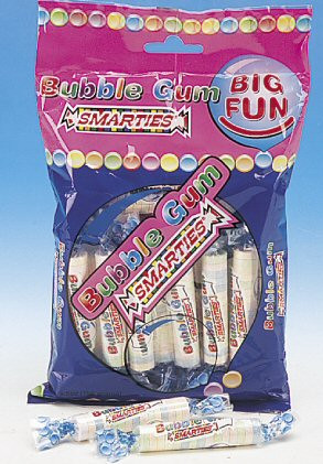 Sweet Candy tart candy Smarties as Chewy delicious bubble gum! Comes in a box of 12.
