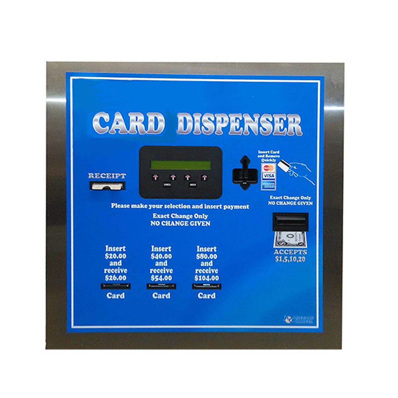 This Pre-Valued Card Dispenser is ideal for large vending and amusement locations. It dispenses .30mm thickness, it has a 300-card capacity in three bins (100 per bin), and is designed for use with $1, $5, $10 and $20 dollar bills. The bill acceptor is complemented by a 500-note stacker. Great for pool halls, laundromats, and car washes. Eligible for 1 year warranty on parts (excepting vandalism).