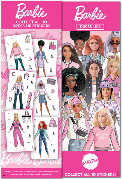 Dress Barbie in a whole range of exciting outfits and discover looks from her various careers, fun hobbies, and high fashion style! Add cool accessories and friendly pets to complete the look. Meet Barbie’s friends and dress them in their own unique styles, too. This fun-filled sticker collection encourages imagination, expression, and discovery through play. Collect all the stickers to show your enthusiasm.