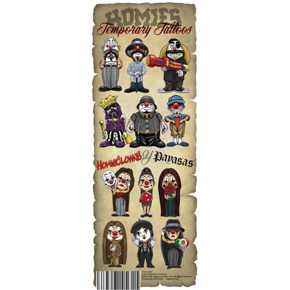 This Tattoo series depicts clown Homies in tattoo designs suitable for a broad range of aficionados.