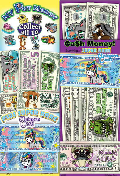 My Pet Money Vending Stickers (300 ct)This is not a sticker item; it is paper money. The paper bills come inside the flat vending sleeves.Cash in with this fun play money featuring favorite pets...