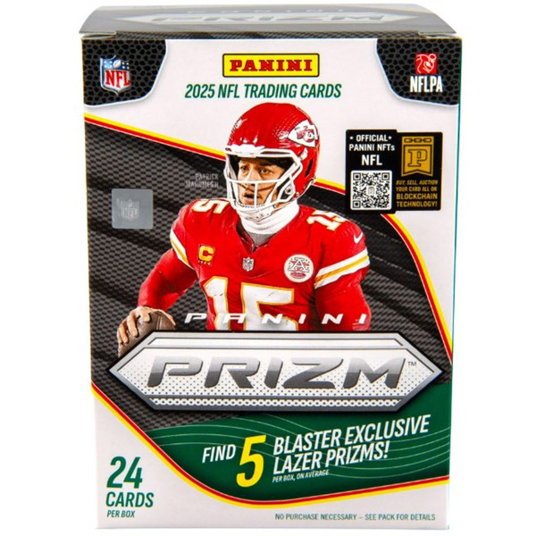 One of the most-beloved brands in trading card history, Prizm is back again for the 2025 season! Prizm football in 2025 features a 300-card base set and a loaded Rookie lineup! Look for a wide array of Retail-exclusive Prizm parallels. Each Blaster Box delivers 4 cards per pack, 6 packs per box for a total of 24 trading cards.