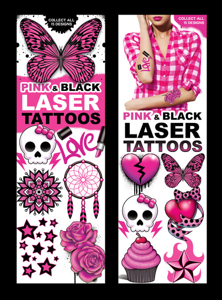 Celebrate Pink and Black skin art with this fabulous art in two colors! These new Pink and Black tattoos pack some serious gurl attitude! Get them today to amp up the sales attitude coming from your flat-vend machine.