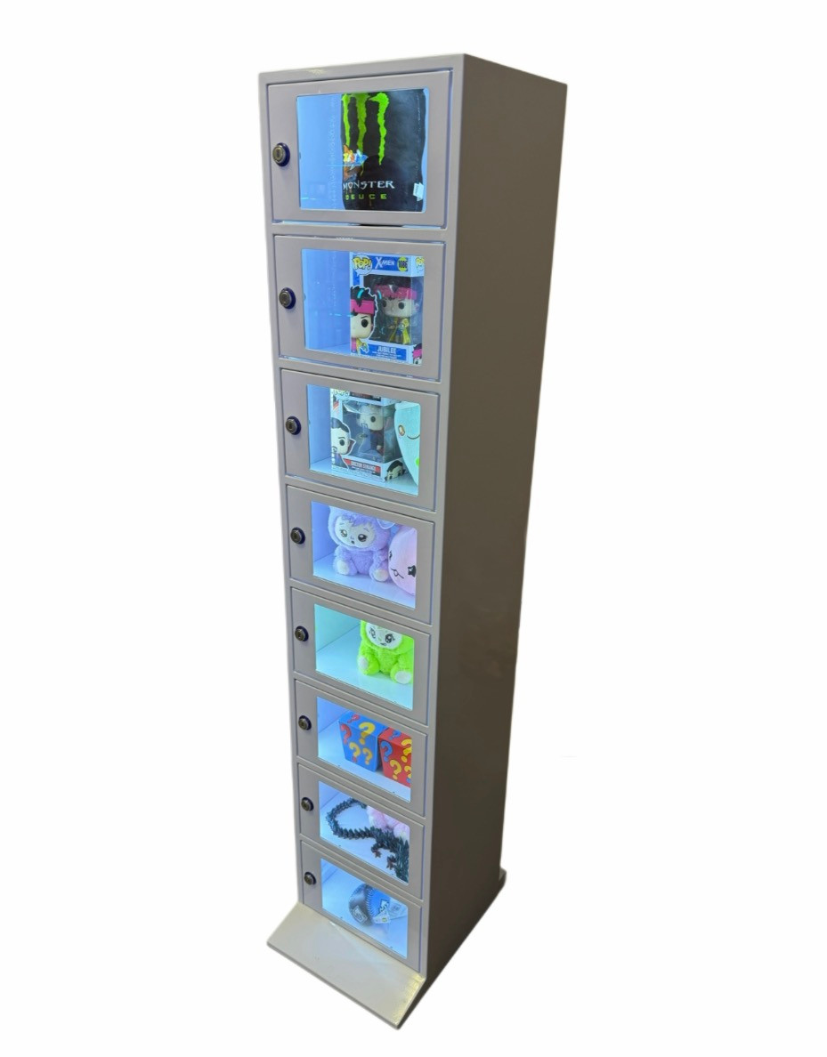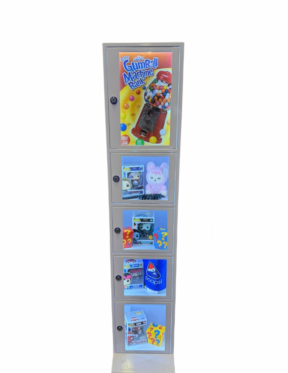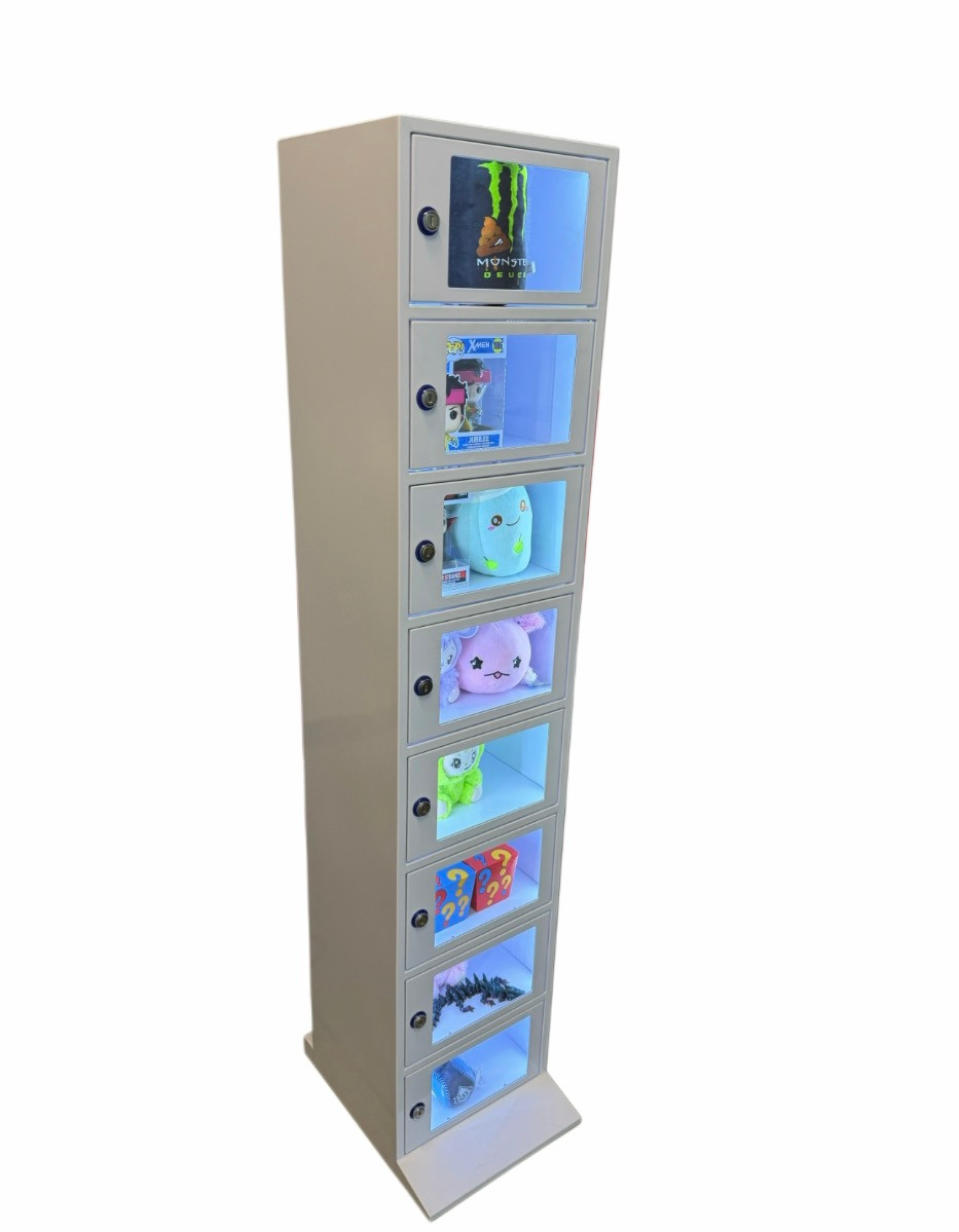 A sleek, automated prize redemption solution featuring secure, self-service lockers. The Prize Locker Tower delivers instant prize fulfillment without staff assistance, making it ideal for arcades and entertainment venues. Its space-saving vertical design supports a variety of prize sizes and integrates easily with existing redemption systems—turning every win into an exciting, seamless experience.
