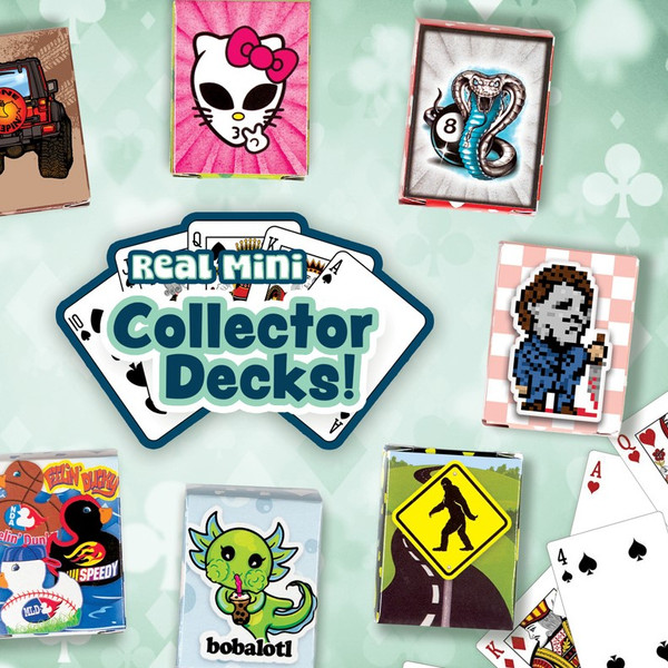 Unleash Hours of Entertainment: Collect all 8 of these complete, real playing card decks! They have 52 cards with kings, queens, aces, jacks and all the numbers as well as all four suits. On the back of each set, there is one of eight designs like a sasquatch, a pixelated horror motif, a drama llama and others. Embark on the collector's journey with these colorful card decks!