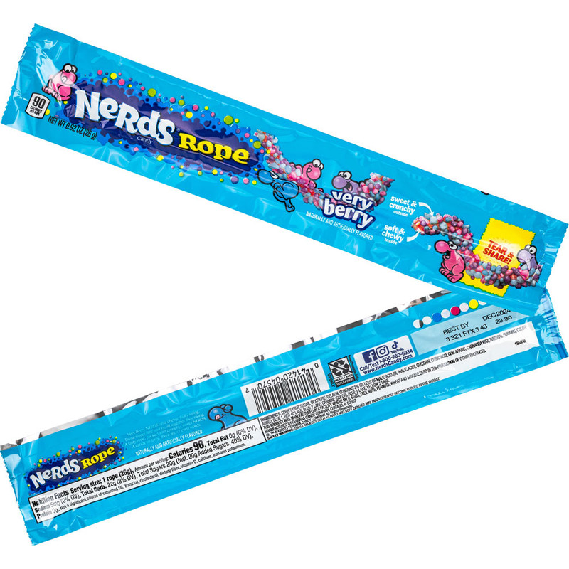 Nestlé Nerds™ Rope – Very Berry (24 Count) A Tangy, Chewy, Crunchy Classic in Every Bite! Get ready for a flavor adventure with Very Berry Nerds™ Rope—a chewy gummy strand coated in a rainbow of crunchy, tangy...