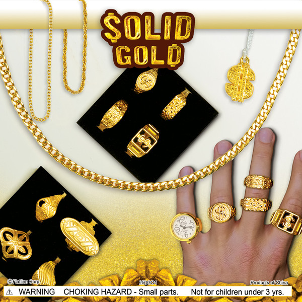 Solid Gold Jewelry Mix includes bracelets, necklaces and a variety of fun rings in which money symbols may predominate. Accessorize at your vending machine with more than one!
