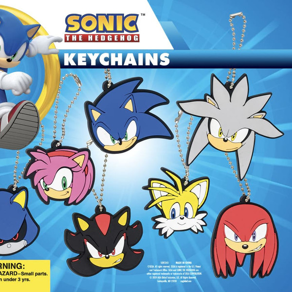 The collection of Sonic characters affixed to these keychains includes seven different personages, including but not limited to Amy, Knuckles nd Metal Sonic. The very desireable keychains have a durable rubbery texture and work well in pockets because they are flexible, flat and soft!