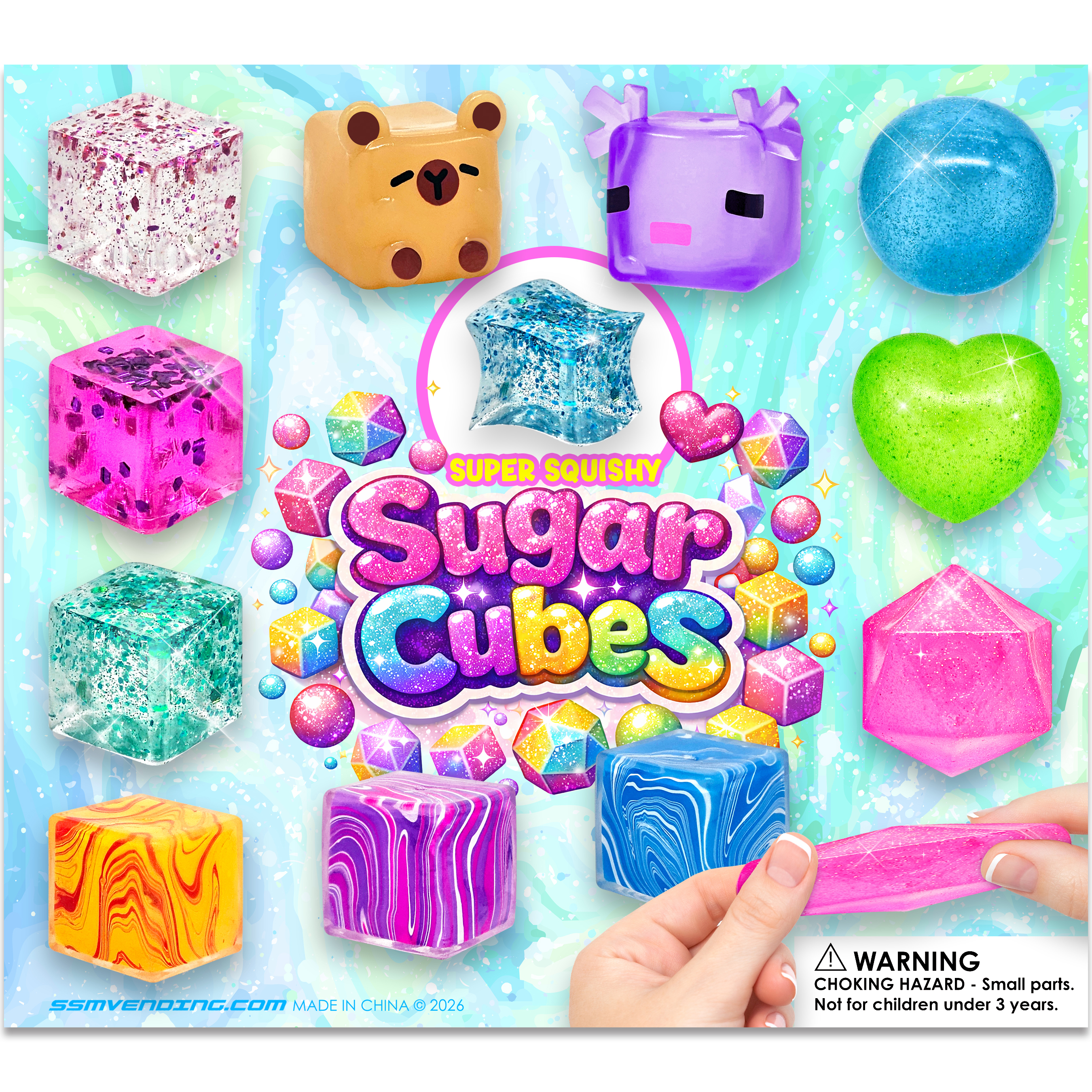 Will Dispense in machines with a 2" acorn vending wheel. Stretch out some sales with this mix of stretchy Sparkly cube type of squishy toys. There is no guarantee of the proportion of each type of toys in the mix.