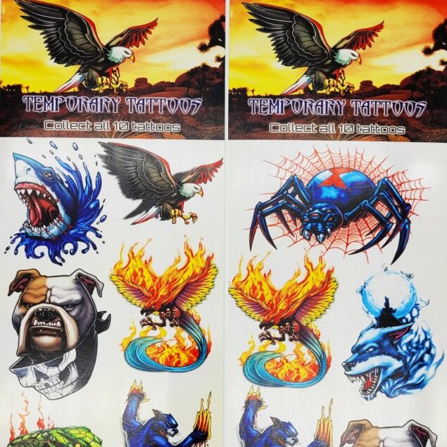This series of temporary tattoos features really cute wild animals like lion, tiger, zebra, leopard snake, minkey and more. There are 10 Wild Animals in the mix.